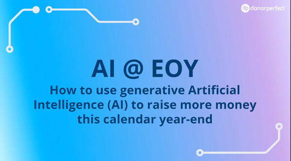 There’s so much to know about your donors – why they choose to support you, what motivates them to give, and their capacity to make a difference for your mission. Now’s the time for your donors to learn about the wonderful things you do for your community, too.sion at calendar year-end.