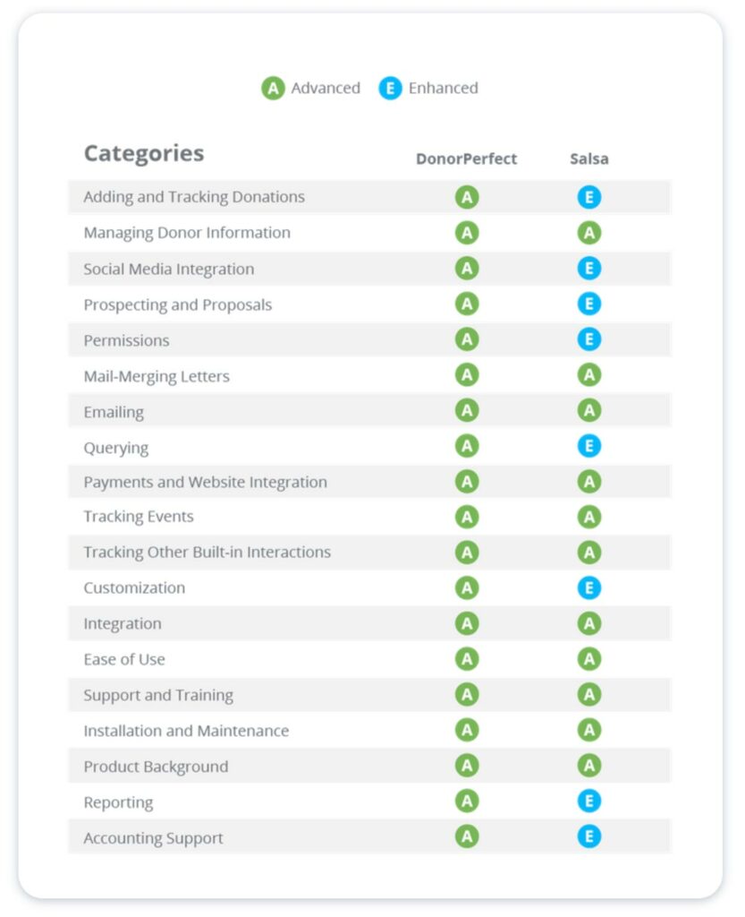 I left Salsa for DonorPerfect due to the integrations. I love that we can connect QuickBooks Online and Constant Contact in one hub, while also maintaining peer-to-peer fundraising and auction capabilities in our system. Not to mention, DonorPerfect’s custom reporting is more intuitive and user-friendly.