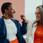 Donor and Nonprofit worker engaged in a friendly conversation.
